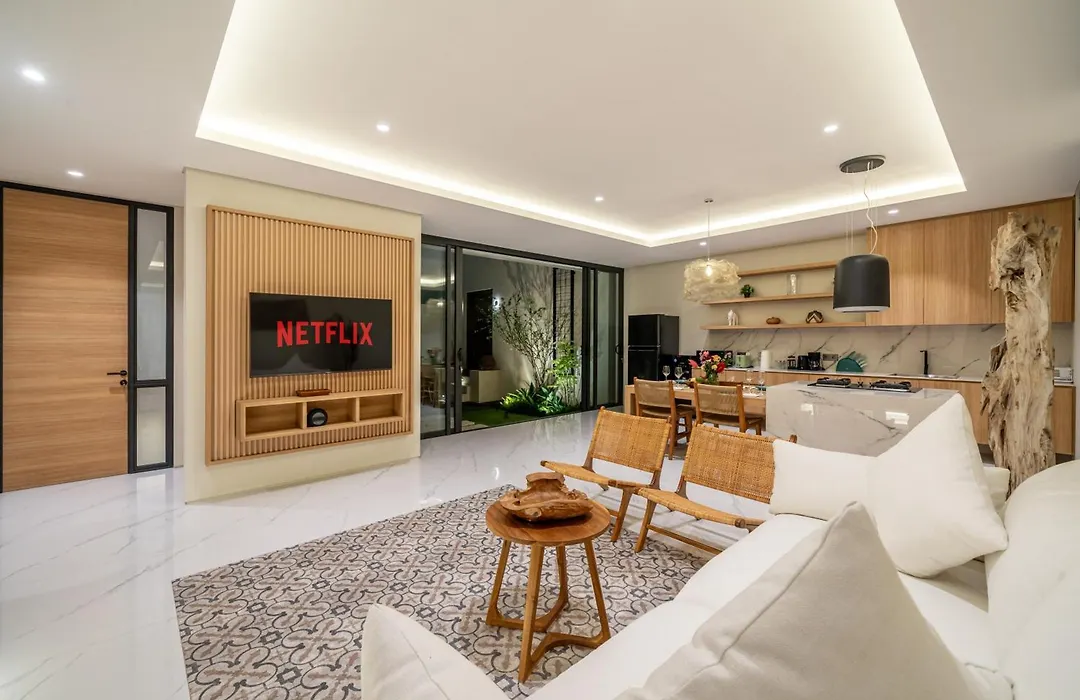 La Villa Noema Brand New Modern 2 Bedroom Villa Private Pool Canggu cuenta con una cocina bien equipada con cafetera, nevera y menaje de cocina. Los huéspedes pueden cenar en el restaurante Kedai Kesar, situado a unos 5 minutos a pie. El aeropuerto más cercano es internacional de Bali Denpasar, ubicado a 20 km de la villa.